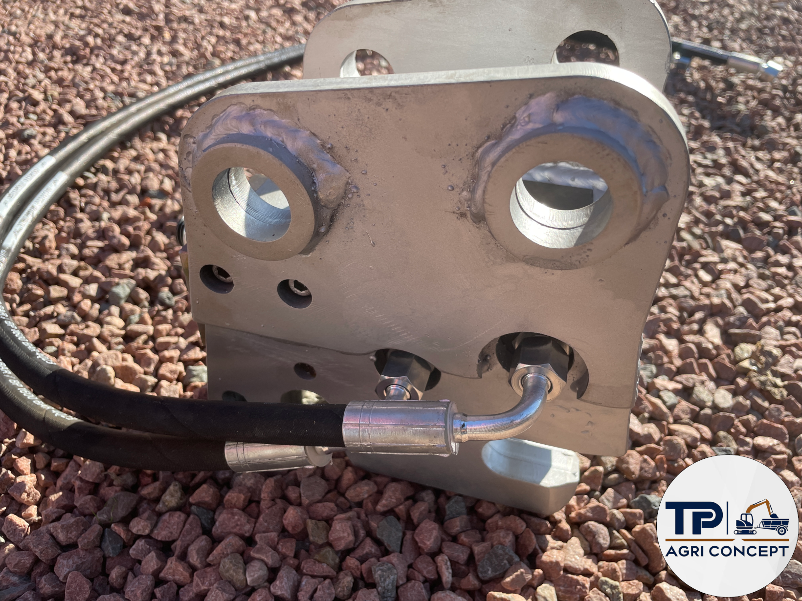 Elle permet de réutiliser les godets d’origine fournis avec la machine, sous réserve que la mini-pelle soit équipée d’une ligne hydraulique auxiliaire (type BRH ou équivalent).