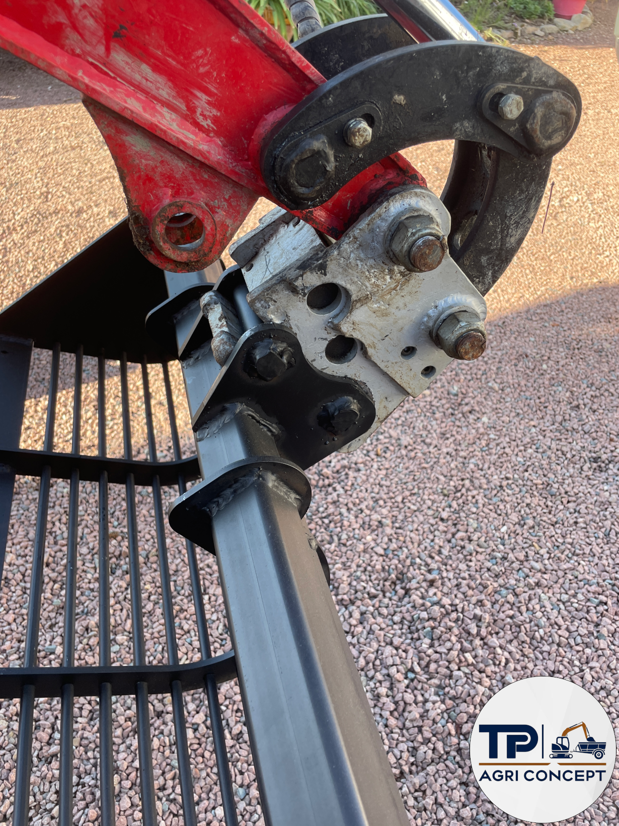 Spécialement conçue pour les mini-pelles d’importation 800 kg et 1 Tonne de type HT08 ou HT10, cette attache se monte directement à la place du godet. Les différents accessoires viennent ensuite s’y fixer : l’ARH s’intercale ainsi entre le pied de bras de la pelle et le godet.